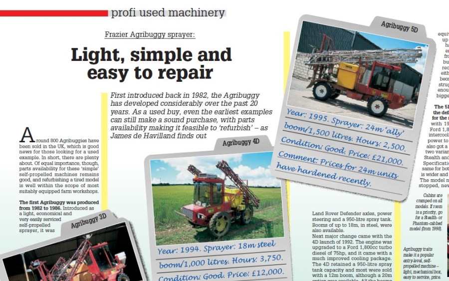 USED MACHINERY: First introduced back in 1982, the Agribuggyhas developed considerably over the past 20years. As a used buy, even the earliest examplescan still make a sound purchase, with partsavailability making it feasible to ‘refurbish’ – as James de Havilland finds out