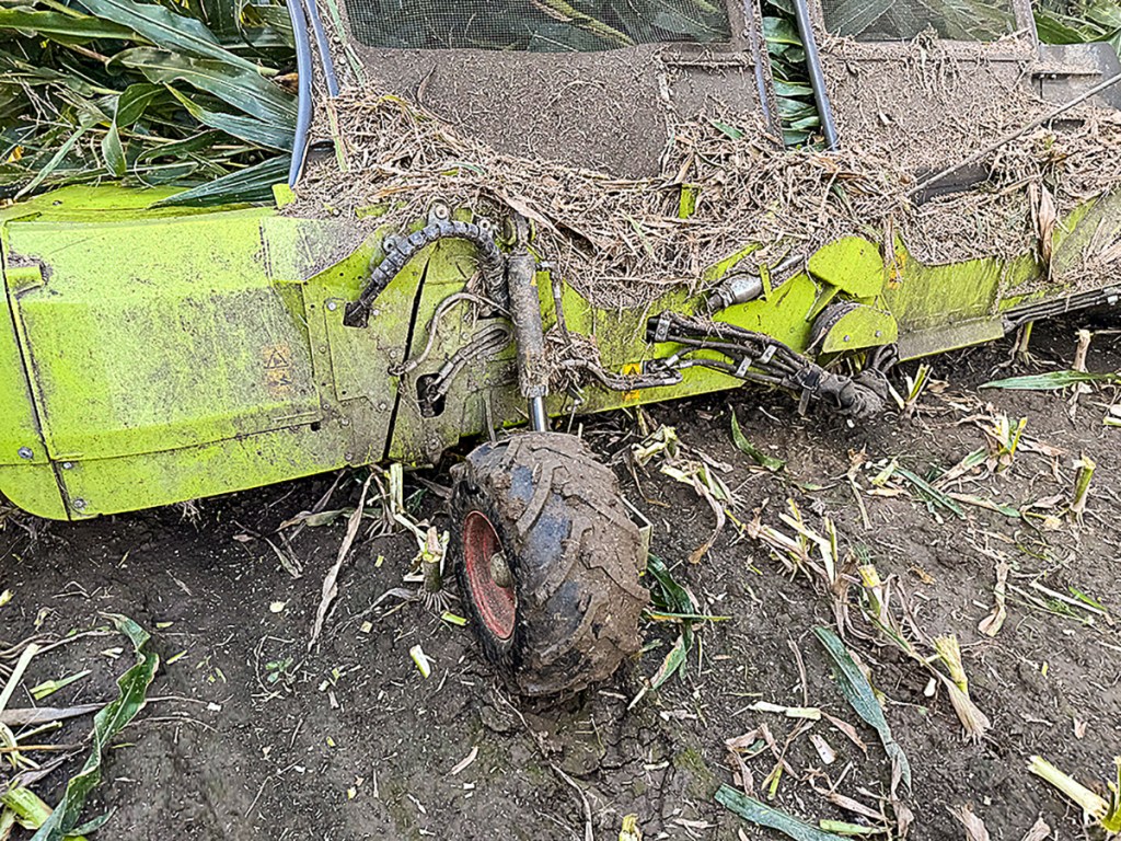 The variable drive allows the knife speed to be significantly increased if required —for instance, in lodged maize or wholecrop silage. The scrapers underneath the knives ensure the stubble is shredded properly, which is very good for getting the stubble to break down, especially across mainland Europe where they are battling the costly corn borer beetle. To ensure no cobs are lost on their longer journey through the wider header, nets along the top of the headers are now being fitted to keep the crop from making a break over the top.