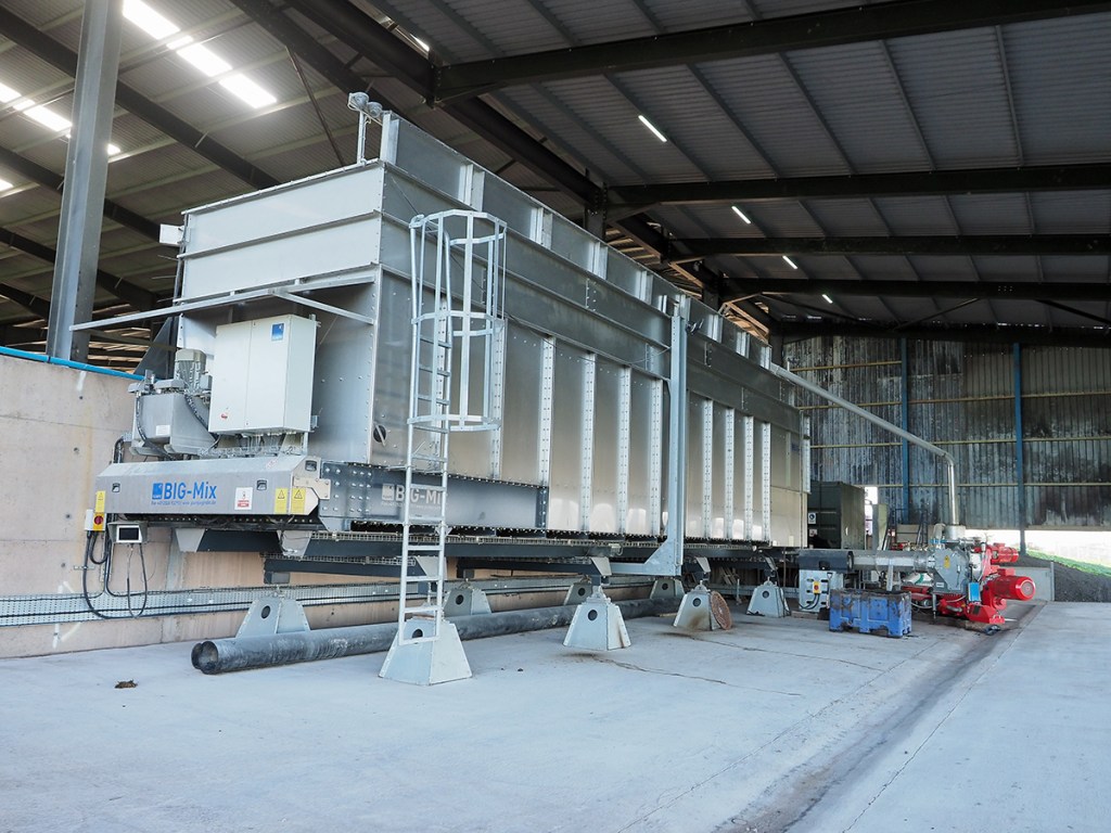 Tom points out that the key to anaerobic digestion is that the feedstock has always got to be moving and stirring, so it must be liquidised. It goes into a recently-commissioned Vogelsang Big Mix, described as a ‘giant food blender’. Manure and crop feedstock are placed in the 120 tonne hopper and transported via a push floor to an adjacent processing chamber to be chopped via vertical mixing screws and mixed with warm liquid digestate fed back from the plant.