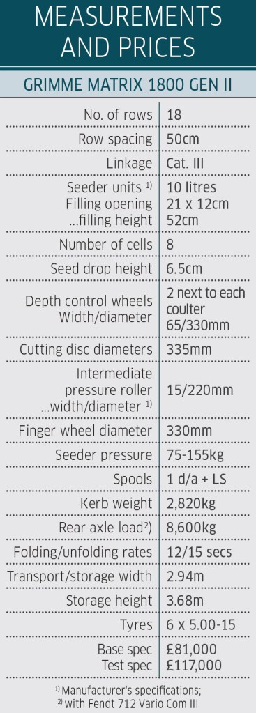 - High price: while the base machine starts at £81,000, the test machine climbs to £117,000. In 2017, the comparable 18-row Matrix without pre-em markers and clod remover, but with terminal, was in the region of £75k.