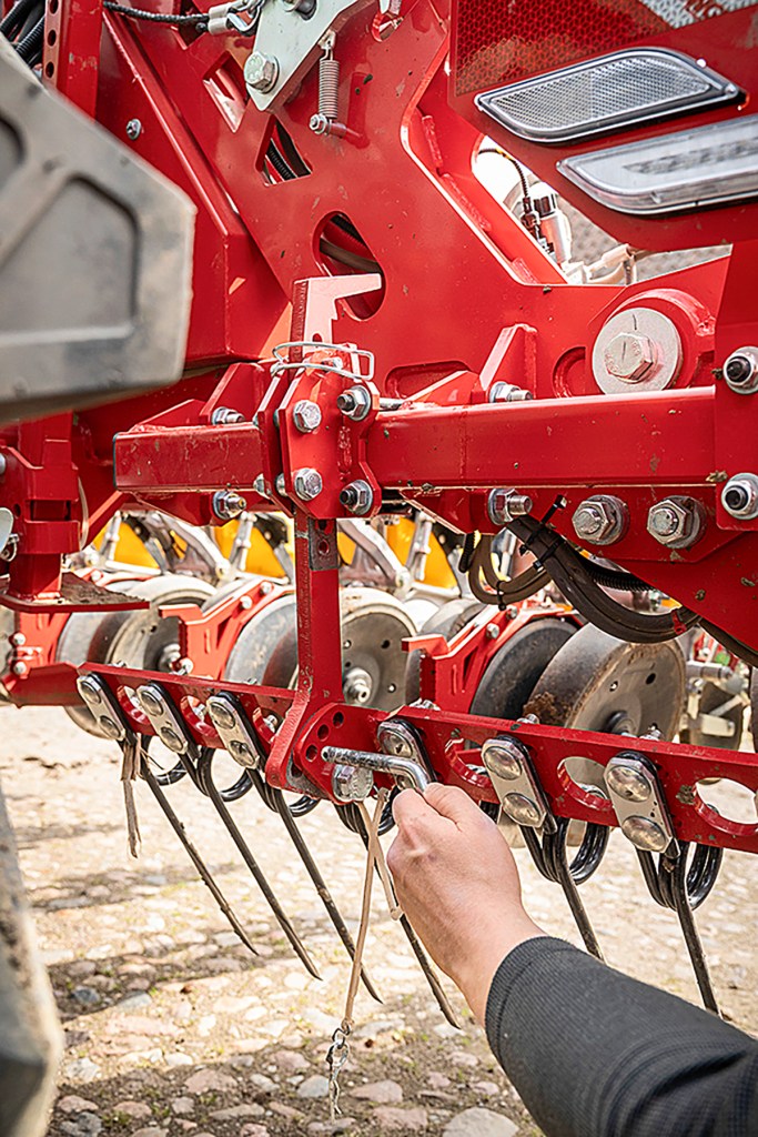 Higher coulter pressures are possible in the tractor wheelings thanks to stronger rams. You just need to be aware that, up at full pressure, the machine can start to lift out of work slightly.