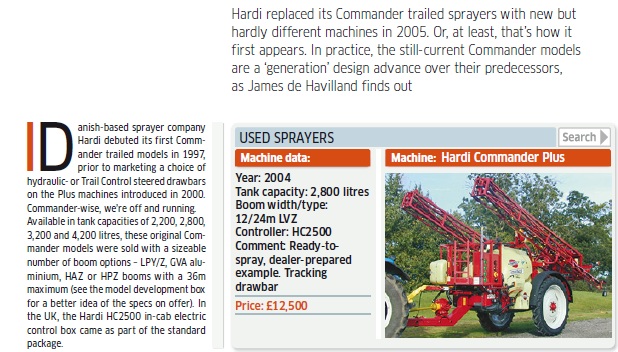 USED MACHINERY: Hardi replaced its Commander trailed sprayers with new but hardly different machines in 2005. Or, at least, that’s how it first appears. In practice, the still-current Commander models are a ‘generation’ design advance over their predecessors, as James de Havilland finds out