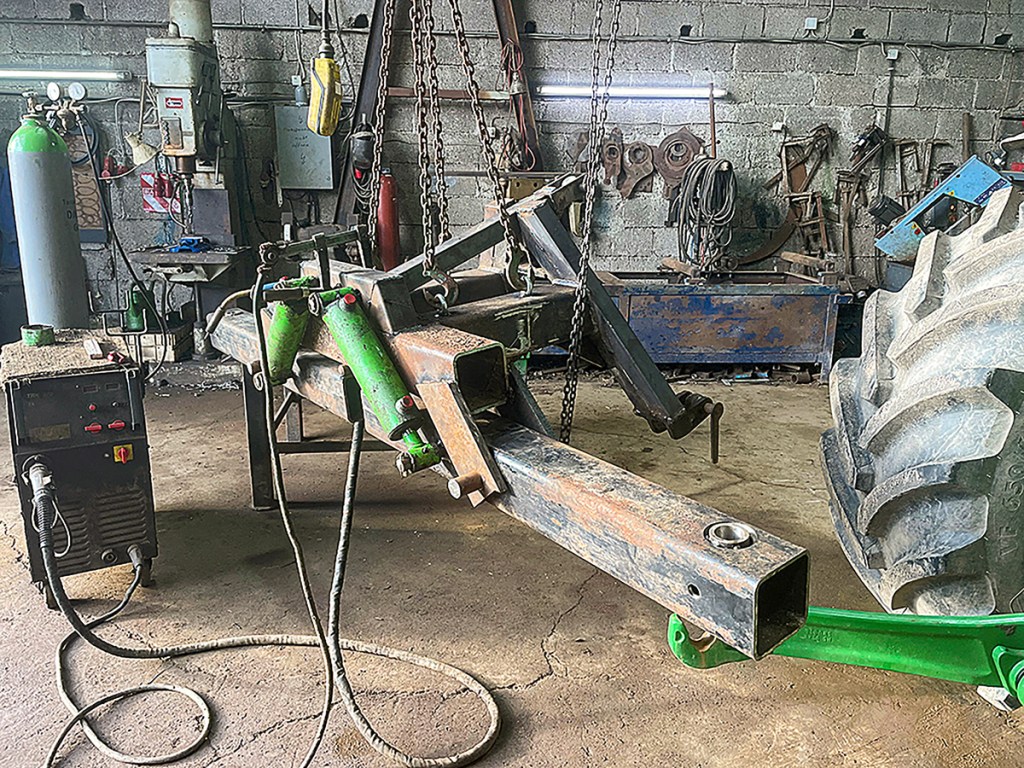 Most of the key parts we used were already scattered around the farm. For instance, the 140mm box section was from a scrapped manure scraper. The hydraulic cylinders came from the linkage of a Joskin slurry tanker, and an old A-frame was also given a new lease of life.