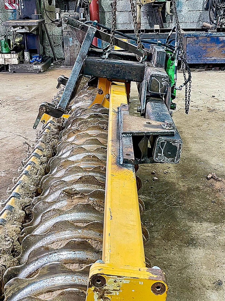 Since we had recently bought a new packer for our main 4.50m Agrisem cultivator, we decided to make our own front press and use the Agrisem’s original roller. The 70cm diameter, 2.25m wide rolls were still good enough for this job because they only had to support little more than their own weight.