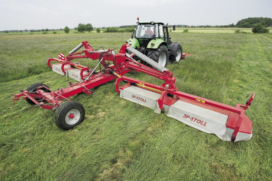 Driving impression: JF-Stoll GXT12000/GD3205 F mower combination While most of Europe’s mower makers have been heading down the ‘butterfly’ route to maximising output, Danish firm JF-Stoll has seemed noticeably reluctant to follow suit, preferring to stick with the conventional approach of pumping out its solo trailed machines wider – and even wider. That changes in 2008 when UK farmers are likely to get their first glimpse of JF’s monster GXT