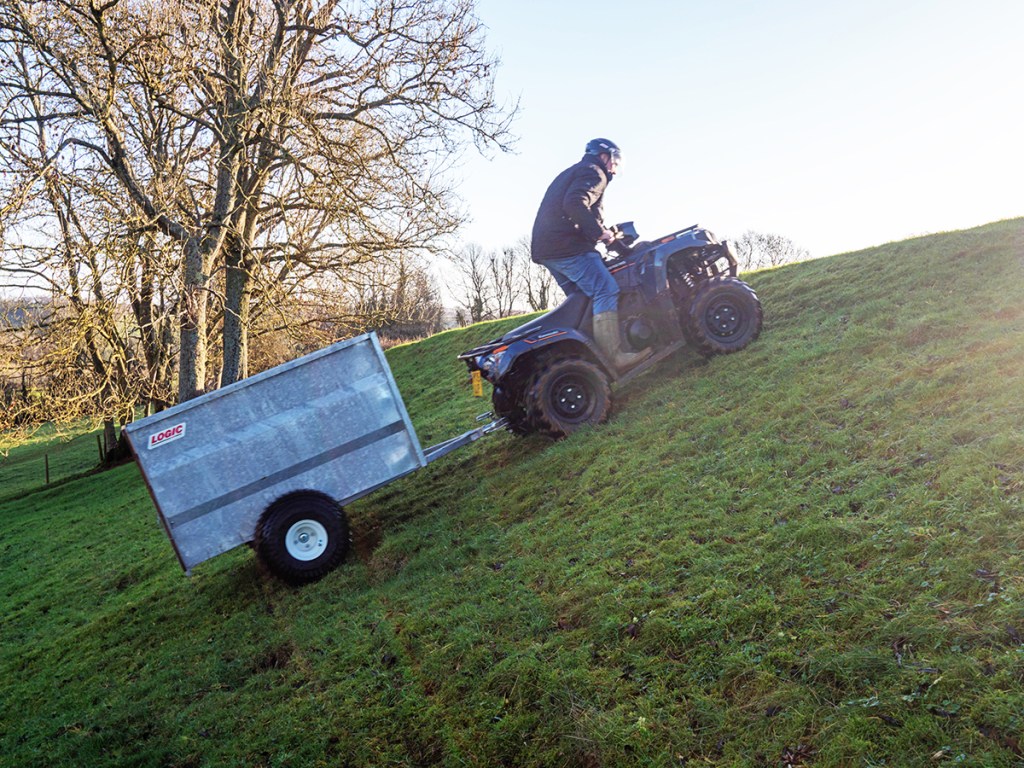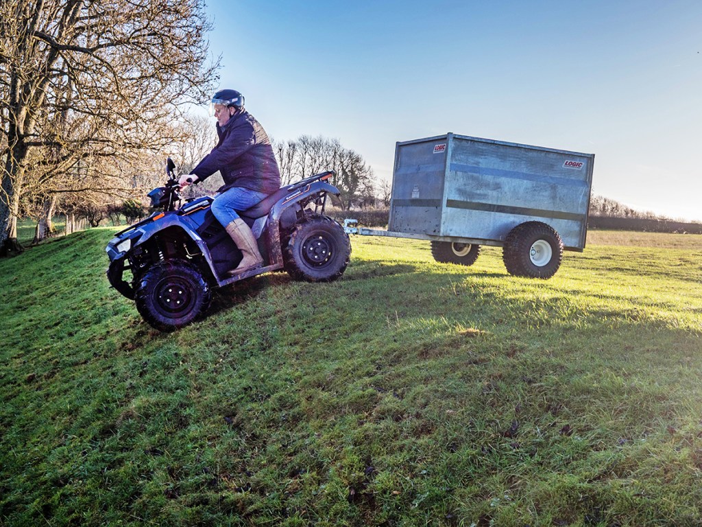 If you are fortunate enough to have a choice, you will no doubt favour a basic UTV with roof and screen for stock checks in filthy weather. But an ATV retains its appeal as a motorised pair of legs, a light footprint and speedy agility proving well-suited to general livestock duties. Add a trailer, and the utility of an ATV increases hugely, the more so with a livestock trailer with a tailgate for easy loading. During its time with us, the 450 proved a nippy runabout, the Logic stock trailer we borrowed for the test adding easy load utility. This pairing made a useful combination.