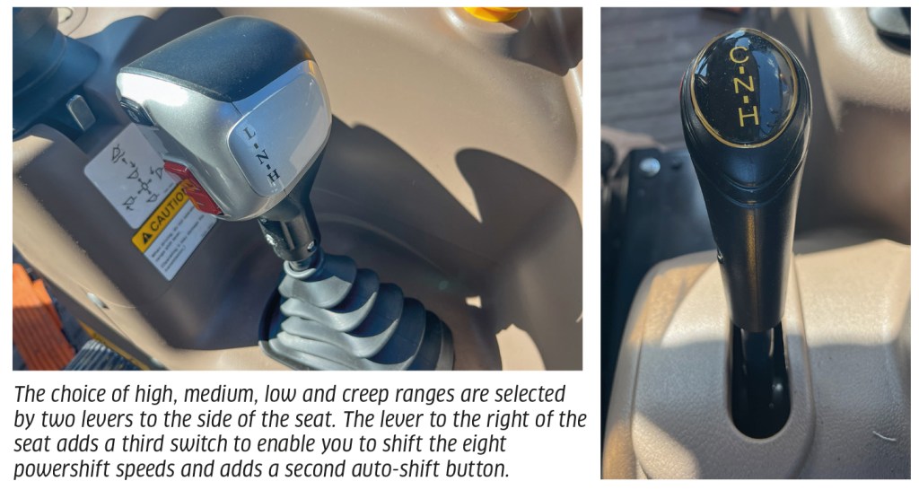 The transmission can be switched to shift automatically but this did not suit our transport loop. In auto, the transmission, which is made in house by Kioti parent company Daedong, was programmed to change up at 2,000rpm and so hung on to a lower gear when we would want to change up at a lower engine speed. Service Engineer software can alter the shift pattern, but using the powershift buttons on the arm rest was easy so we did not bother with auto. We also noted the was tractor happy to set off from rest in third or fourth in high range on the road.