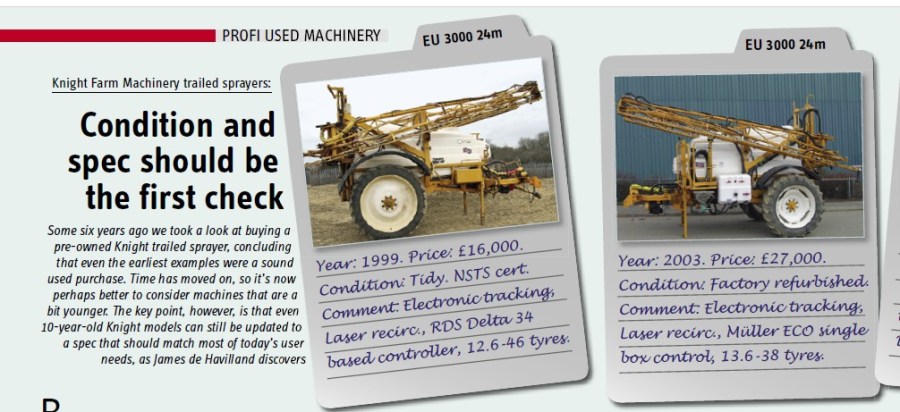 USED MACHINERY: Knight Farm Machinery trailed sprayers: Some six years ago we took a look at buying a pre-owned Knight trailed sprayer, concluding that even the earliest examples were a sound used purchase. Time has moved on, so it’s now perhaps better to consider machines that are a bit younger. The key point, however, is that even 10-year-old Knight models can still be updated to a spec that should match most of today’s user needs, as James de Havilland discovers