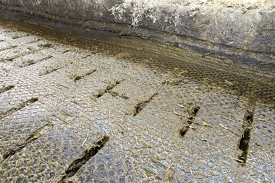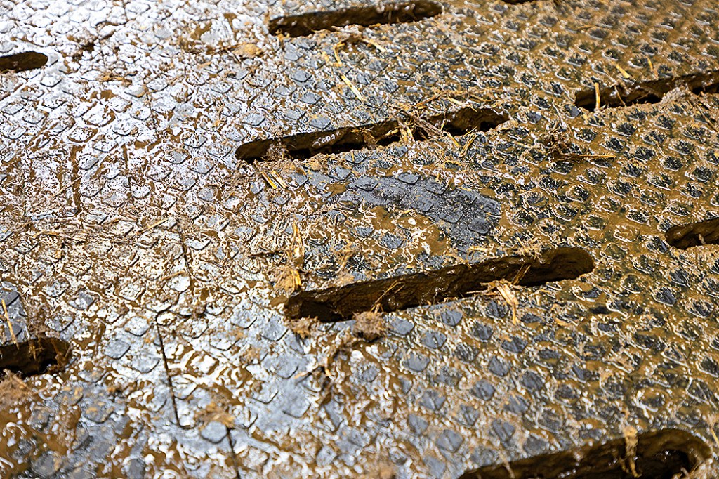 There is no issue with puddles, either, as the urine and water from the drinking troughs quickly drains away. Even though the farm uses chopped straw for bedding its cubicles (which is applied by running a spreader on the rubber floor) they have not struggled with blockages or similar issues.