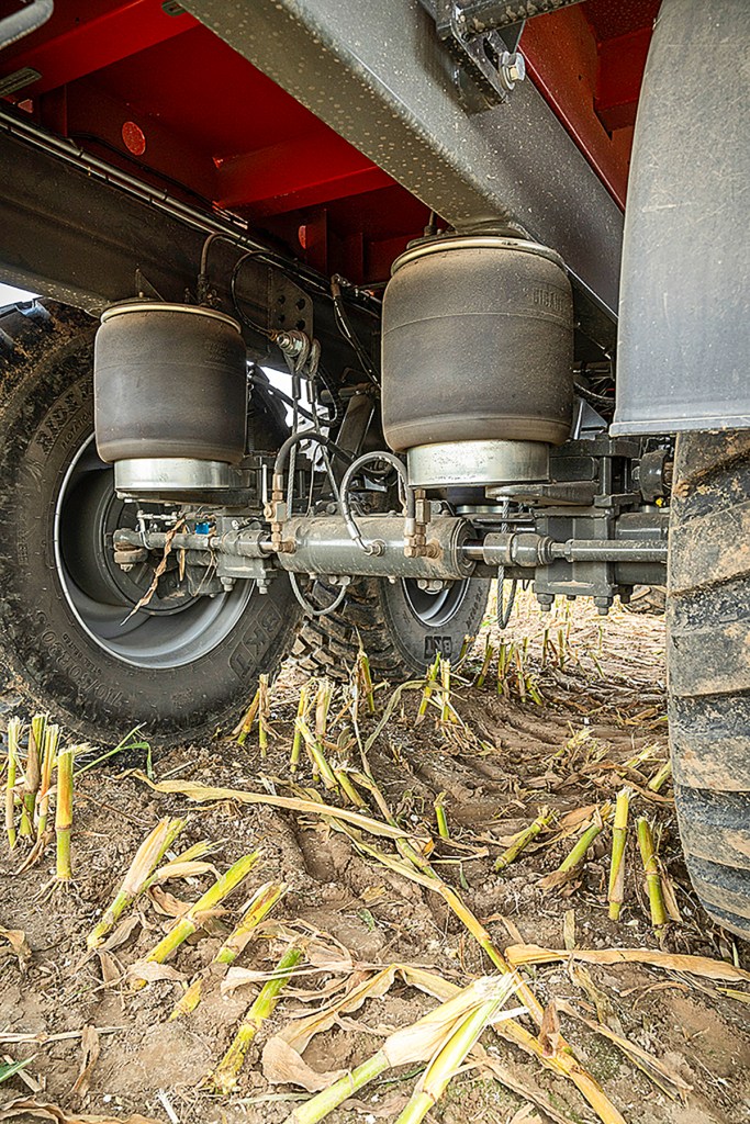As mentioned, the axles are sourced from BPW. The standard set-up uses parabolic springs, though our test trailer was supplied with the optional air suspension, a £1,806 extra. And during the test, the RamBody demonstrated good road holding, with the steering axle tracking smoothly at all speeds; even crossing a furrow at a field edge or driving over a lump at the clamp, it seems stable. However, the body roll does take some getting used to, especially on uneven roads and at typical carting speeds. We reckon that this is partly caused by the RamBody’s high centre of gravity. Plus our trailer was on big 710/50 R30.5 tyres, which wouldn’t have helped the situation, even if they do enable the trailer to travel really well in the field.