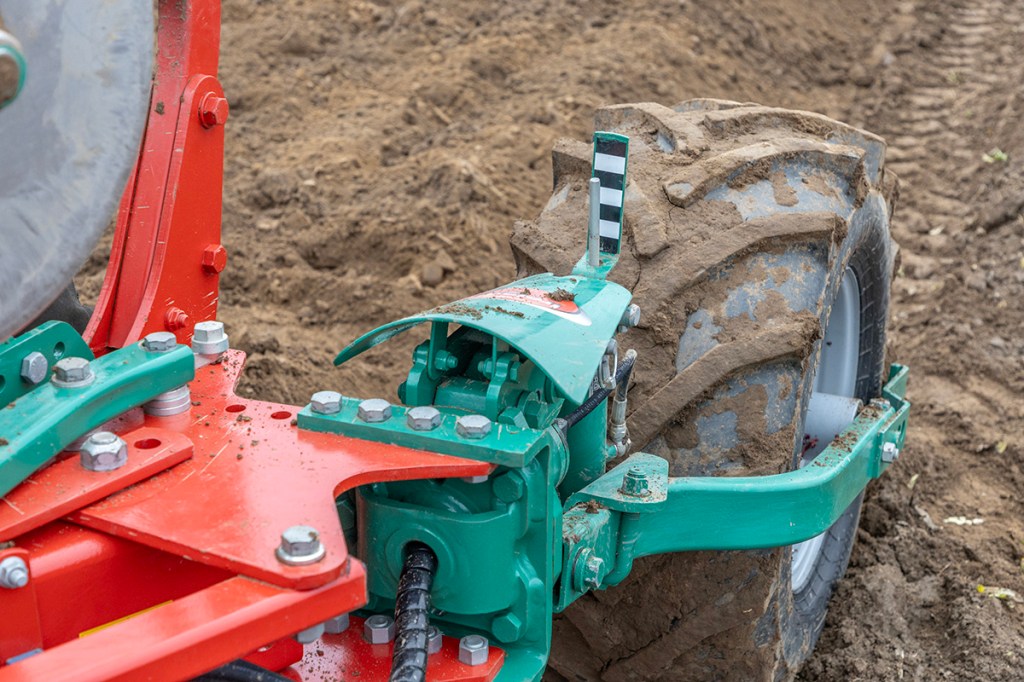 Compared to some other depth wheel designs, this one takes away all the crash and bang from turning the plough over, improving longevity.