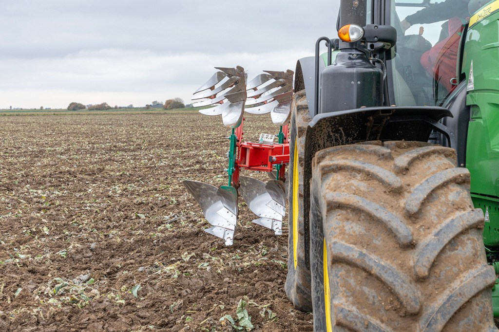 We chose to operate on-land, simply because keeping our John Deere 6R215 horizontal meant all four wheels grip equally, and it’s also a far more comfortable sitting position for the operator. The on-land setting also moves the plough forward, bringing weight closer to the tractor.