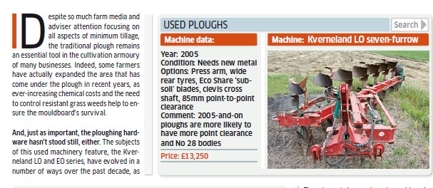 And, just as important, the ploughing hardware hasn’t stood still, either. The subjects of this used machinery feature, the Kverneland LO and EO series, have evolved in a number of ways over the past decade, as have other ploughs within the Kverneland offering. Among the key product developments