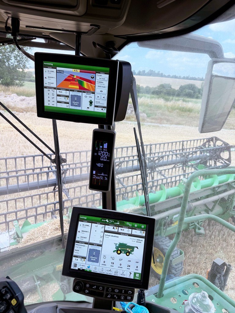 However, John Deere’s Operations Center takes care of a range of functions from yield logging to communication with the service team at dealer Farol. Interchangeable twin screens monitor autosteer, machine functions and harvest settings plus camera feeds; there’s a separate ‘infotainment’ screen which also gets Glynn’s seal of approval.