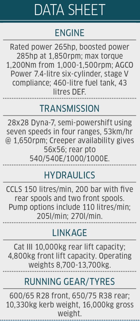 At 900 hours, the Dyna-7 transmission failed, and the extended period of analysis at the dealership meant the 8S.265 was out of action for a few months. A loan tractor kept the firm fully operational, and with the security of warranty, the impact on the business was minimal.