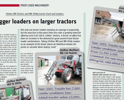 Chilton MX Technic and MX Utility tractor front-end loaders: Bigger loaders on larger tractors Not only are tractor loaders enjoying an upsurge in popularity, but the past four to five years