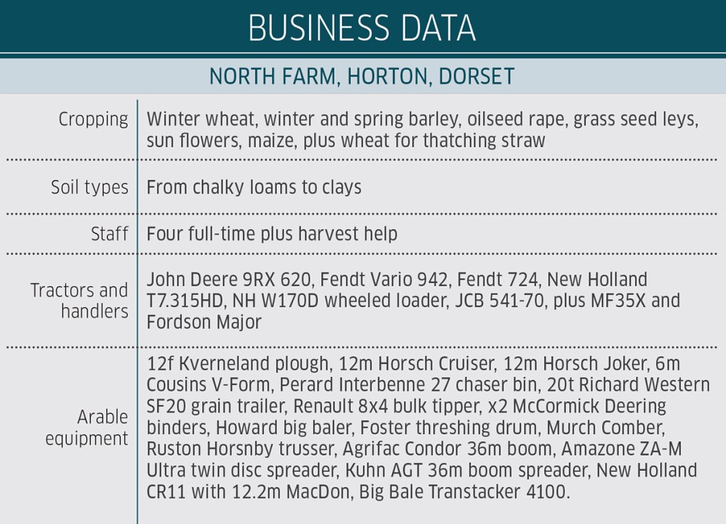 North Farm Horton’s 1,416ha peak workload has eased back slightly in recent times, but the agri-business is still collectively farming over 1,295ha. In addition to the 283ha farmed at North Farm, Peter Snell and his team look after ground for six customers, and there’s always an element of ad-hoc combining each year, as neighbouring farms help each other out when faced with breakdowns and tightening weather windows.