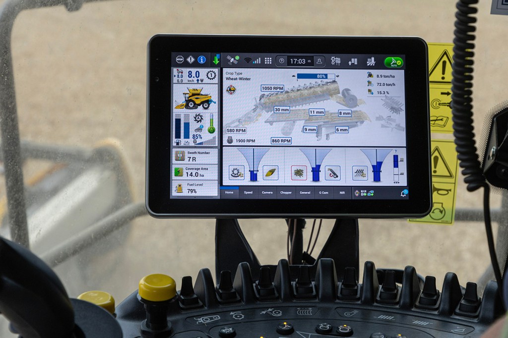 The cab remains unchanged, but gets a pair of Intelliview 12 monitors with improved graphics, along with a host of new tech that makes operating the new flagship CR a straightforward task. NIR provides an instant protein analysis on grains.