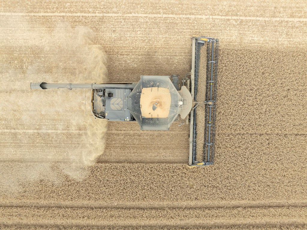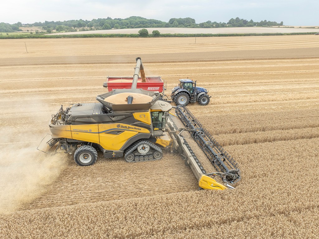 No wonder then, that North Farm Horton prefers to slot a big enough target under the CR11’s extended auger. In this instance, it’s a Perard Interbenne 27 chaser bin hauled by a New Holland T7.315HD. The chaser rig stays on tramlines, adhering to the CTF regime, nipping back to the headland to unload into waiting trailers.