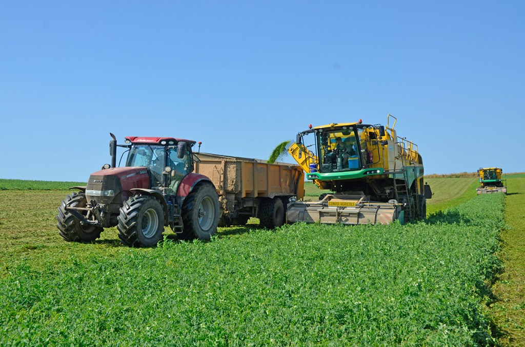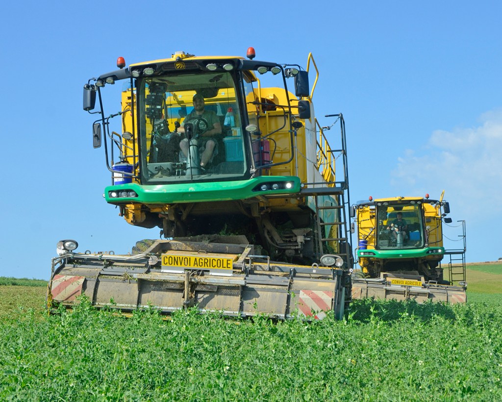 Based at Etricourt Manancourt (Somme area south of Lille), the contractor harvests peas across much of northern France. Split into teams of two or three machines, each one generally covers an area within a radius of 40km.