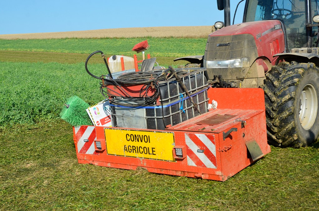 An audible alarm sounds when the 2.3t hopper is 80% full, and on the outside the warning lights flash to let the trailer operator know. The beacon on the cab roof then automatically activates when the hopper is full.