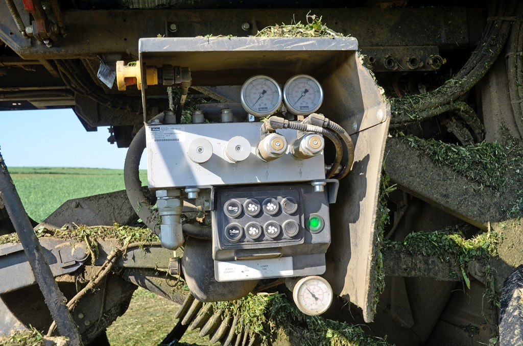 The harvester continues to steer via the rear wheels. The new bit is that the front wheels also turn by 4-6 degrees. “Main benefits of this are tighter headland turns,” explains Mr Seconda, “and the concept also provides a bit of crab steering to ensure that the rear wheels are kept well away from the standing crop.”