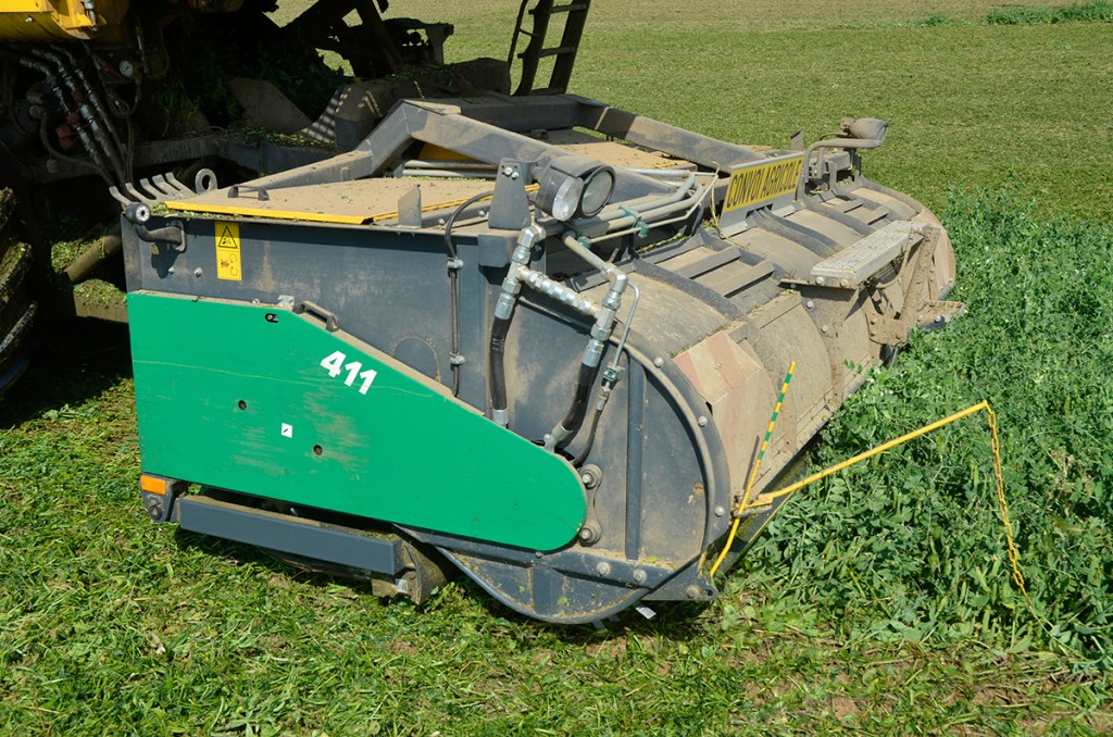 The picking head is available in three widths; 3.5m, 4.0m and 4.2m, of which the 4.0m will be the popular width in Europe. The intake elevator has been widened by 10cm to provide more space for peas and haulm to enter the threshing system.