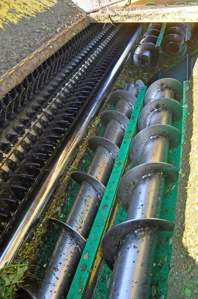 Crops in North America are generally taller and thicker. This led to the development of the new picking head on the two machines we saw. The big difference between all current heads is that the contra-rotating belts have been ditched for augers on the GP6300. The speed of the augers in linked to that of the tined reel. Engineers soon discovered that the technique not only helps to reduce pea losses but also requires less maintenance.