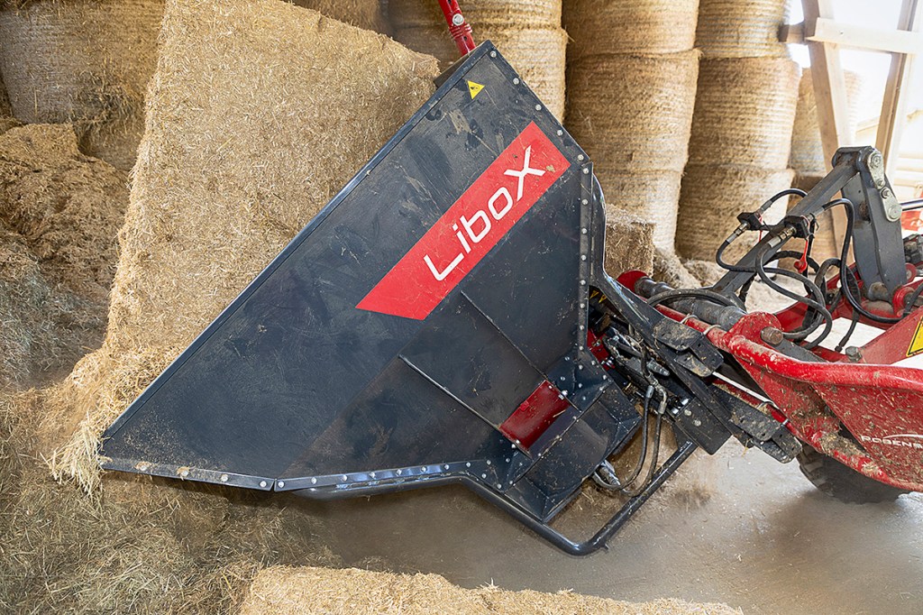 You need one double-acting supply line with a flow rate of 30 to 60l/min at 180 bar plus a lift capacity of at least 450kg. The Libox weighs 250kg on its own and it can carry 200kg of bedding material. A significant amount of that 250kg is in the sturdy frame that supports the 800-litre hopper complete with agitator.
