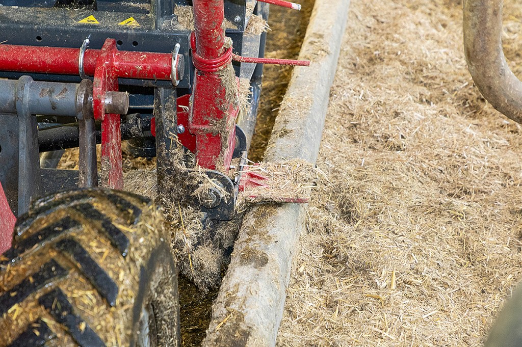 Once the beds have been levelled off, the machine can then apply the bedding material including straw and straw-lime mixtures, spreading short and long cuts as well as chopped, milled and pelleted straw. Other material, such as separated slurry solids, are currently being trialled.