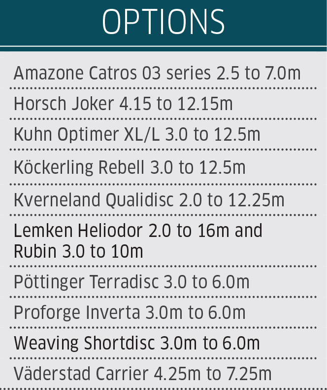 Short disc harrows can offer fast, precise cultivations, incorporating large amounts of residue suggests Gareth Burgess. “They are simple to set up and offer a high output; you can choose a disc to destroy residues such as the 52cm CoverCrush, with limited mixing, or a small serrated disc for more soil movement on the Horsch Joker.”