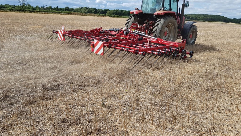 A shallow tine cultivator with spring tines can be used at lower forward speeds to get more mixing, points out Gareth Burgess. “It’s a longer machine so offers more straw incorporation by keeping the straw and soil in the frame for a longer period. Implements such as the Horsch Cruiser XL are available in a range of sizes, so if you want more output you can simply go wider.”