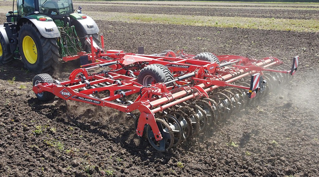 Kuhn product specialist, Edd Fanshawe points out that shallow cultivators offer high output for relatively low horsepower. “The Kuhn Prolander tine cultivator needs just 23-38 horsepower per metre and the Optimer disc 35-40hp. You can effectively swap 3.0m for a 6.0m shallow working implement. “