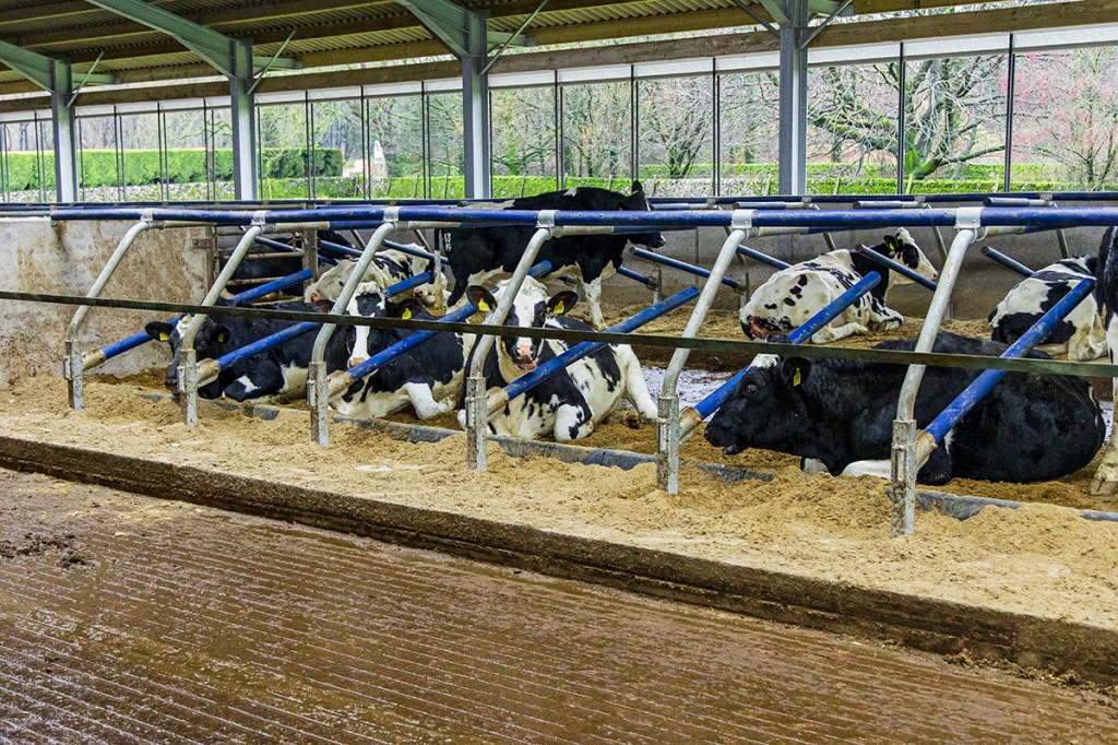 Inside are Agriprom release cubicles. This flexible system enables all the cows to get comfortable while reducing any potential for pressure points. The system allows for a greater variation in cow size and age, as the dividers guide the cows to lie in the right orientation rather than force them. Comfort increases times for rumination.