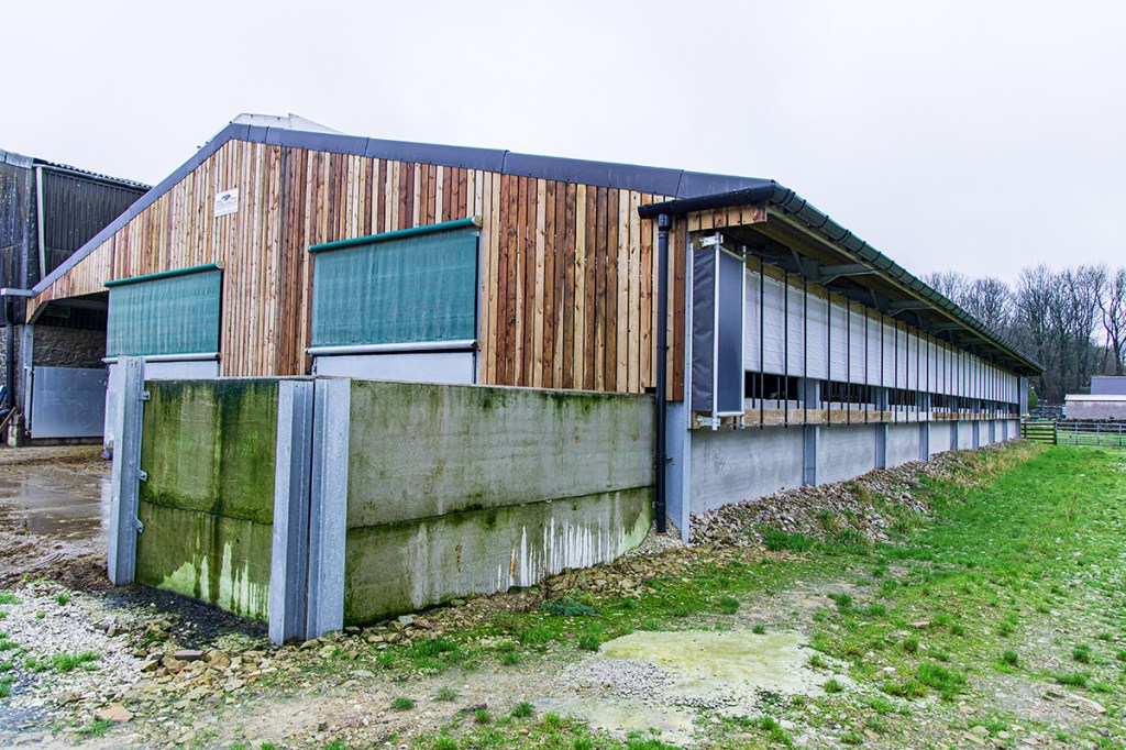 Yet it was the addition of the light ridge and side curtains that ultimately created the best environment. The side curtains are from Huesker, and on the main cubicle shed these are the bottom-up type. They’re automatically controlled via an external weather station, which senses rain and wind, closing most frequently with rain, keeping the cows dry. If there is an exceptionally strong wind, they close, too.