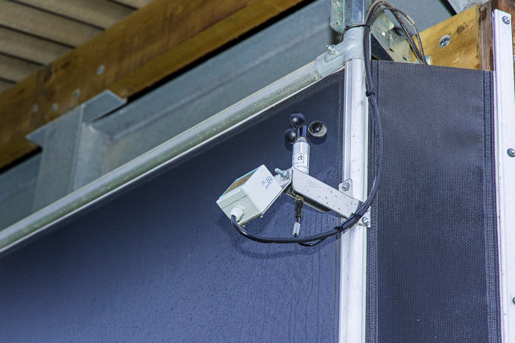 On the sides of the 2025 building, Heusker curtains were used, but top-down instead of bottom-up. Like the main building these are self-monitored, with the environmental station making decisions. There are two sets of coupled sensors — internal and external — that feed in information about weather, temperature, humidity and building status, affecting when and how much the curtains are open.