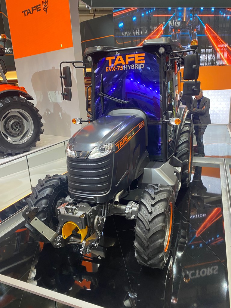 TAFE entered the European market with Stage V, electric, and concept hydrogen tractors at Agritechnica 2023. A more powerful hybrid tractor was unveiled at this year’s show – the 75hp EVX75.