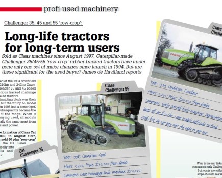 USED MACHINERY: Sold as Claas machines since August 1997, Caterpillar-made Challenger 35/45/55 ‘row-crop’ rubber-tracked tractors have undergone only one set of major changes since launch in 1994. But are these significant for the used buyer?…