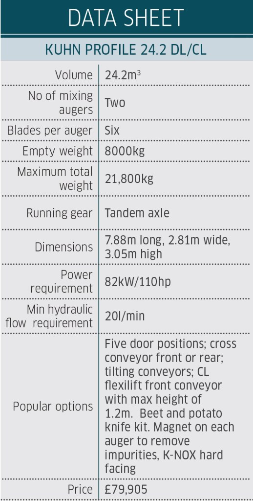 Kuhn says that the 24.2 model is one of most popular choices in its Profile 2 range from 18m3 up to 34m3. All models in the UK over 18m3 are fitted with tandem axles.