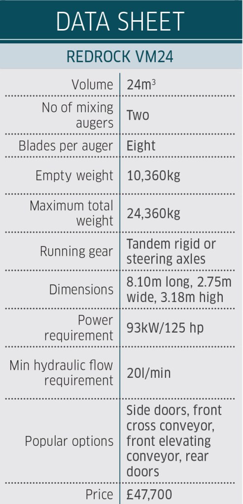 Redrock VM Twin Auger feeders include machines from 15m³ to 28m³ with larger capacities available on request. Large discharge doors which allow consistent discharge and more efficient chopping between augers.
