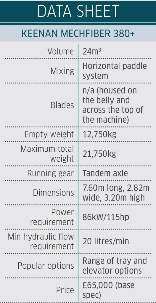 Keenan has reverted to only supplying a horizontal paddle machine. The MechFiber 380+ uses a horizontal paddle system and has seen a number of updates. The ‘castellations’ on the paddle reel have been re-engineered to give a rounded top section alongside an increased rake angle, allowing for greater material movement in the chamber. Less material now resides on the paddles, meaning better mixing with less friction and wear on the machine.