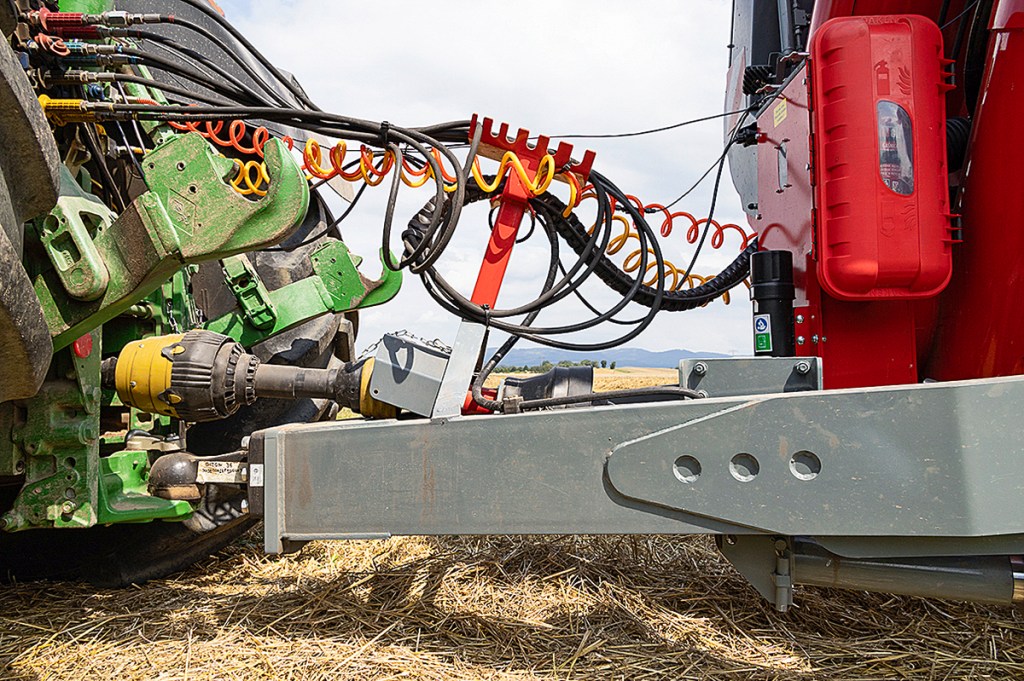Other bits attached to the tractor’s back-end include the La Magdalena pto shaft, the main lights and the plug for the optional Dinamica Generale sourced weighing system. Rather than use one long shaft between the tractor and auger gearbox, it splits into two shorter shafts, with a carrier mounted on the drawbar to overcome the angle of the low-slung gearbox.