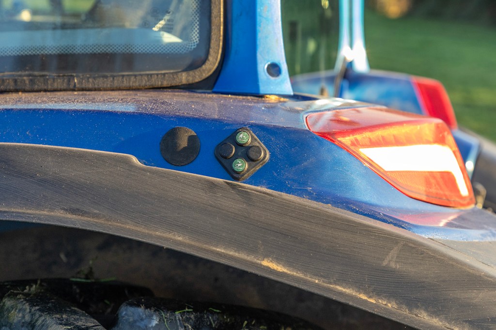 Despite the narrow stance, the tyres still protrude outside the rear wings, so dirt and muck gets thrown up and over the sides of the tractor. Worse still, the back of the wings don’t wrap down over the rear wheels anywhere near enough, amplifying the problem. Wing-mounted push buttons are frequently plastered with muck and mud being thrown off the tyres, and they’re mounted quite high up the wings, making it a stretch for two of the farm’s shorter operators.