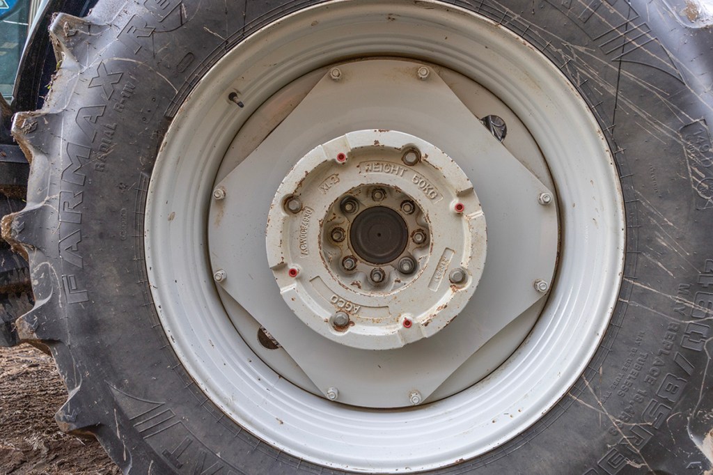 Being loader-biased, this G125 has been equipped with rear wheel weights – a pair of 50kg Agco rings are fitted to each side, but are bolted on using the wheel nuts, and not fixed separately onto the wheel dish. A replacement handbrake cable, fitted by our host farm, needed the wheels removed to access the old cable and install new, and that meant weights off first. Six of the tractor’s eight wheel nuts secure the weights, which was said to be an inconvenience when it came to getting the back wheels off.
