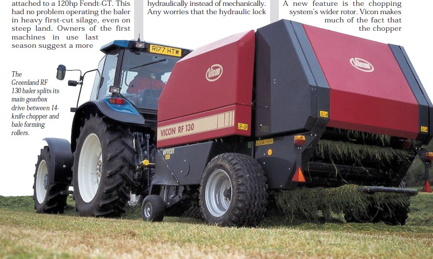 In 1997 Vicon added the RF 130 to its baler line-up. Similar in size and baling system to the RF 120 OC model it replaces, this new RF nonetheless incorporates some interesting changes and developments