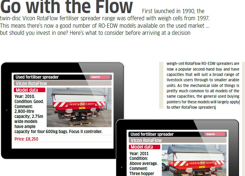 First launched in 1990, the twin-disc Vicon RotaFlow fertiliser spreader range was offered with weigh cells from 1997. This means there’s now a good number of RO-EDW models available on the used market … but should you invest in one? Here’s what to consider before arriving at a decision