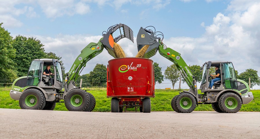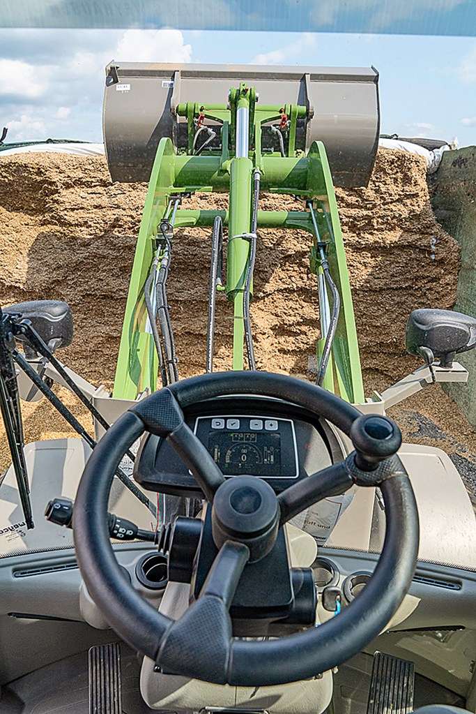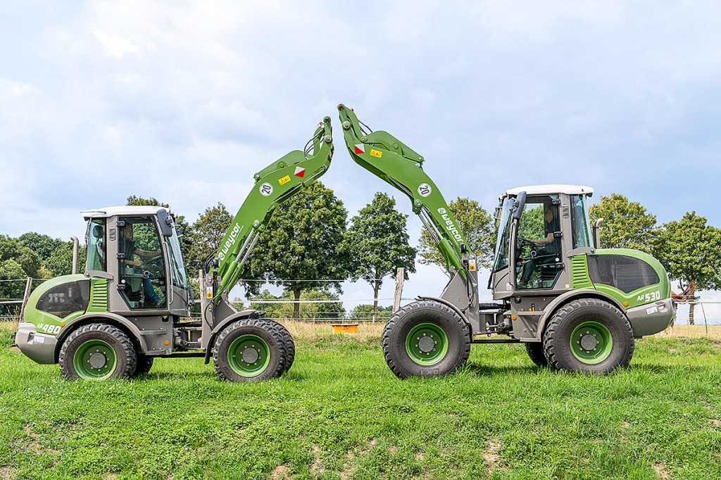 For our test, Weycor sent us a pair of wheel loaders of the same weight class, but with some differences: the slightly more compact AR480 is less powerful, especially on longer distance work where it lags behind its bigger brother, the AR530. However, it doesn’t require AdBlue and is somewhat easier to manoeuvre — the ideal helper on medium-sized dairy farms with short distances.