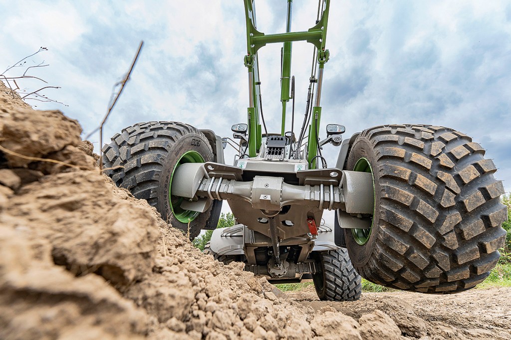While the chassis of the AR480 is somewhat slimmer, Weycor uses the same oscillating pivot steer in conjunction with rigid axles — both here and on the AR530. To ensure good stability, the joint is tilted forwards by 7⁰ and pre-tensioned, which resulted in good driving and static behaviour. The joint allows for 12⁰ of articulation between the front and rear axle and 40⁰ articulation angle. It also has a good grease bank.