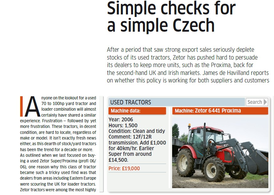 After a period that saw strong export sales seriously deplete stocks of its used tractors, Zetor has pushed hard to persuade its dealers to keep more units, such as the Proxima, back for the second-hand UK and Irish markets. James de Havilland reports on whether this policy is working for both suppliers and customers