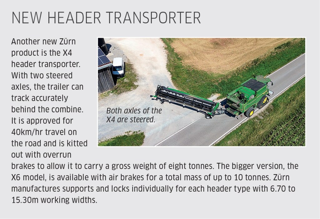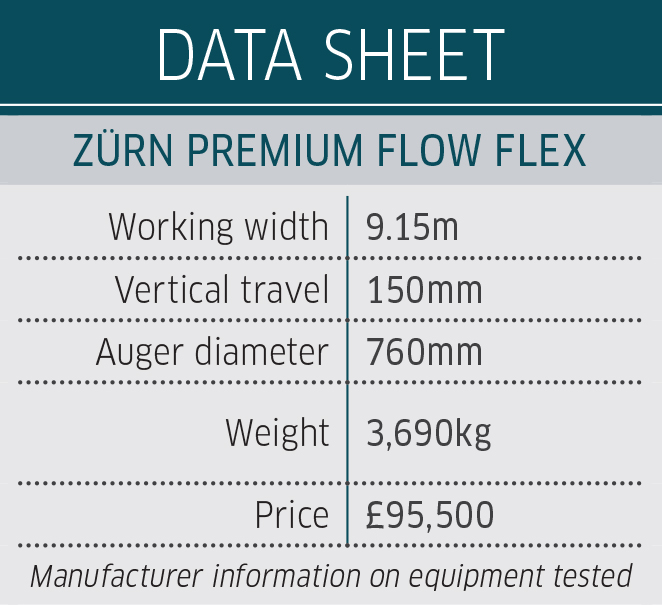 From the outset Zürn will offer the new header for Deere, Case IH, New Holland and Fendt combines. The header comes in a high level of specification with the necessary hydraulic fittings, couplers and connectors; the only optional extra are the crop lifters (£600). The price for the 9.15m header is £94,900.